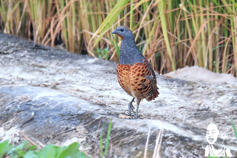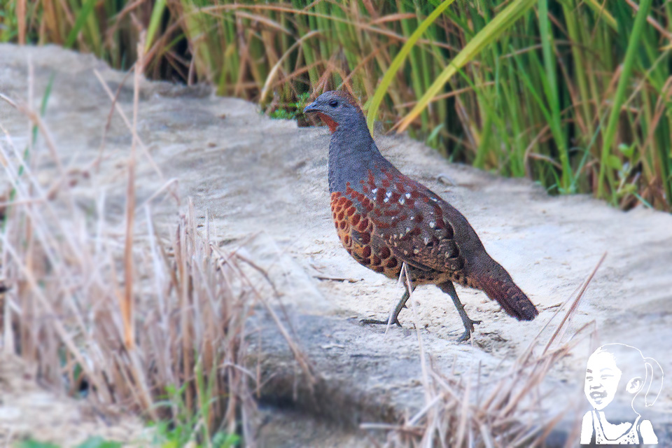 在農園清晨,常常可以聽到竹雞「雞狗乖」的叫聲,但是卻很難清楚看見其影。前一陣子農田下方有塊田剛休耕,一旁是有即將成熟的稻田,其茂密的枝葉提供了竹雞良好的遮蔽,所以這幾天清晨都可以看到數隻的竹雞出來找東西吃,有時還會偷吃一旁快成熟的稻穀! 竹雞在台灣算是普遍的鳥種,但常只聽得其「雞狗乖」響亮而有點吵雜的叫聲,卻不見其蹤影! 機會難得,所以特地找了一天早早起床,0530天還沒亮,就到農田架好腳架,備好大砲守候,0600天才剛亮,遠處就傳來明亮的「雞狗乖」叫聲,沒多久一隻竹雞果然就由草叢中慢慢走出來了,趕緊按下快門拍攝,終於清楚紀錄到了竹雞的身影。
