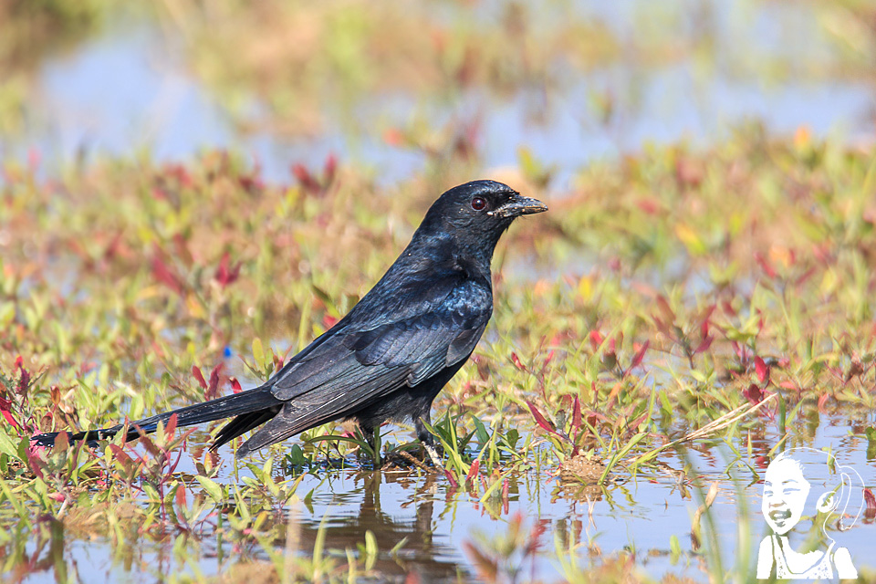 2016年春天,農園開始大規模種植有機稻,而在把農田淹水時,馬上飛來十多隻的大卷尾,等著吃蟲,其翅膀在陽光下顯露出湛藍色的羽色,真是美麗。牠們看來一點都不怕人呢! 大卷尾,俗稱為烏秋,屬於卷尾科的飛羽,為台灣特有亞種鳥類,在台灣為普遍的留鳥/稀有的過境鳥。